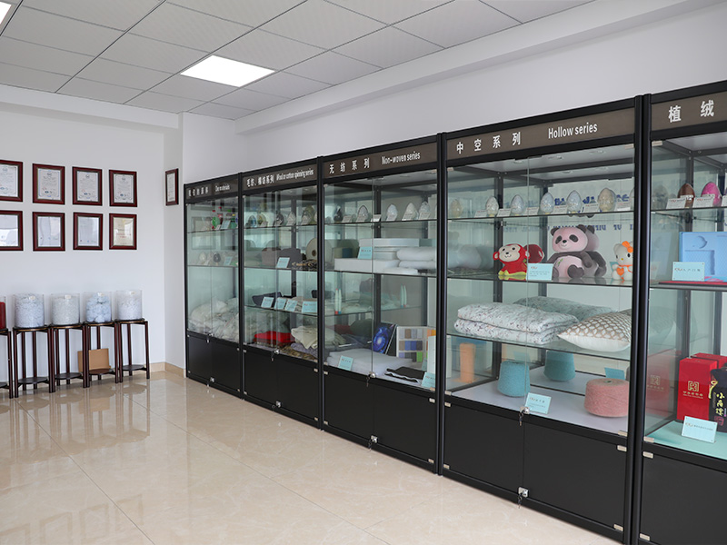 Os principais produtos são cinco séries: fibra ES composta, fibra não tecida, fibra oca, fibra giratória e reboque flocado eletrostático.