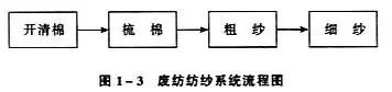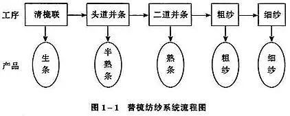 O sistema de fiação residual é usado para processar fios de algodão bruto baratos, cujo processo é mostrado na figura abaixo.