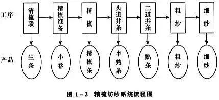 Geralmente utilizado para fiação de fios especiais grossos e médios, para tecelagem de tecidos comuns, seu processo e semiprodutos, os nomes dos produtos acabados são mostrados na figura abaixo.