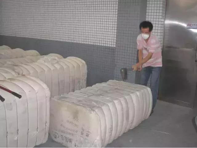 ▲ Os rolos de algodão gerados pelo processo de compensação são alimentados na cardadora